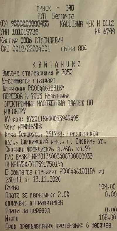 Белпочтой 2-3 дня, 5.52 руб